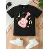 European sizes Cartoon Guitar Print, Casual Breathable Round-neck Short-sleeve Girls' T-shirt, Spring and Summer, Suitable for Trendy and Cute Girls