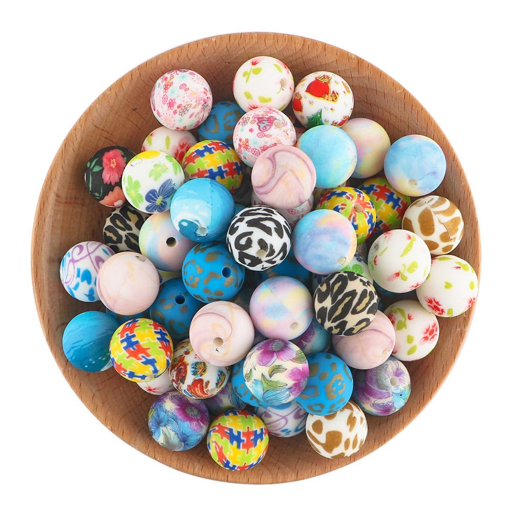 5Pcs 15mm Round Leopard Silicone Printed Beads For Jewelry Making DIY Keychain Necklace Bracelet Jewelry Accessories