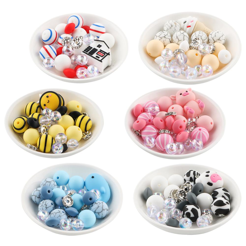 New 31Pcs/Set 3D New Silicone Focal Beads Round Bead For Jewelry Making DIY Beaded Pen Keychain Necklace Bracelet Accessories