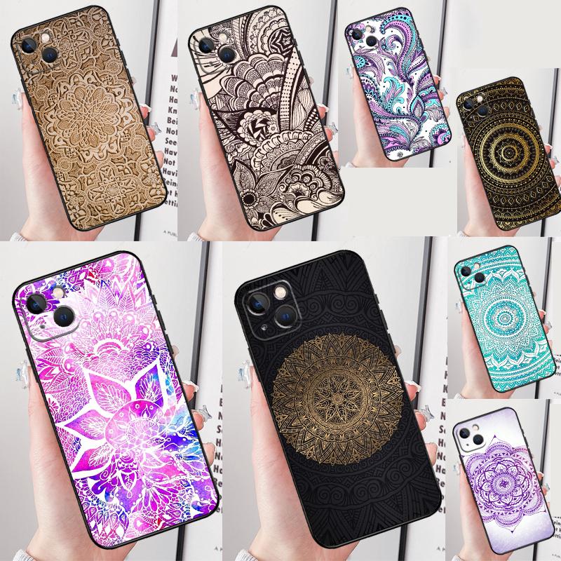 Indian Floral Henna Mandala Phone Case For iPhone 16 Pro Max 12 13 Mini 11 14 15 Pro Max XR 16 15 Plus 16e Cover Shell