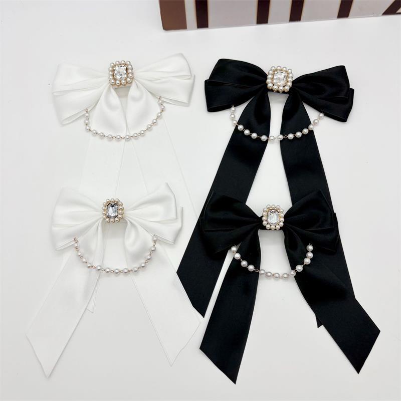 Módní Látka Černá Bílá Mašlička Perlový Řetízek Křišťálový Kamínek Brož Elegantní Dámský Límec Košile Špendlík Květina Smuteční Brož Šperk