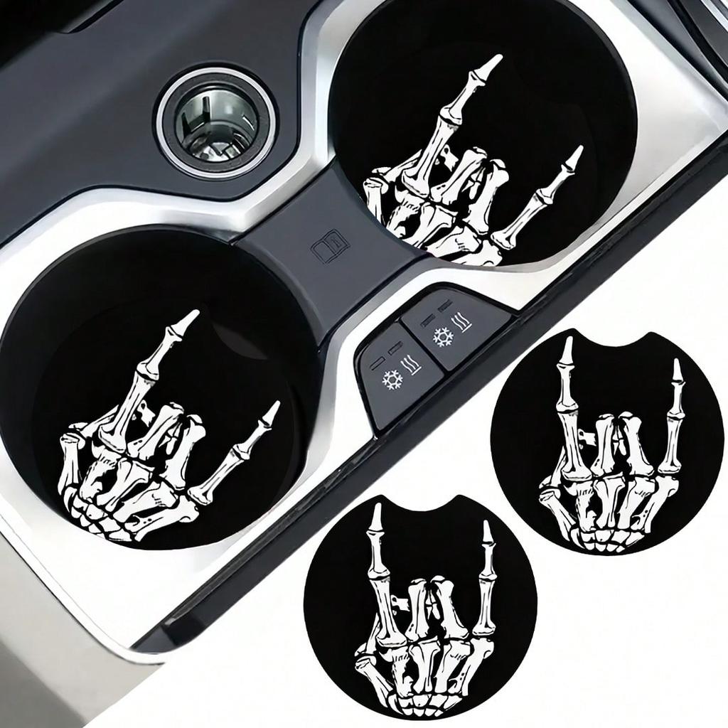 Rock Skull Grip Pattern Car Coasters, Car Non-Slip Coasters, Car Interior Personalized Coasters
