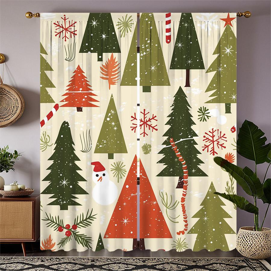 Cartoon Christmas Tree Printed Curtains Pole Bag Decorations Daily Home Room Curtain Polyester