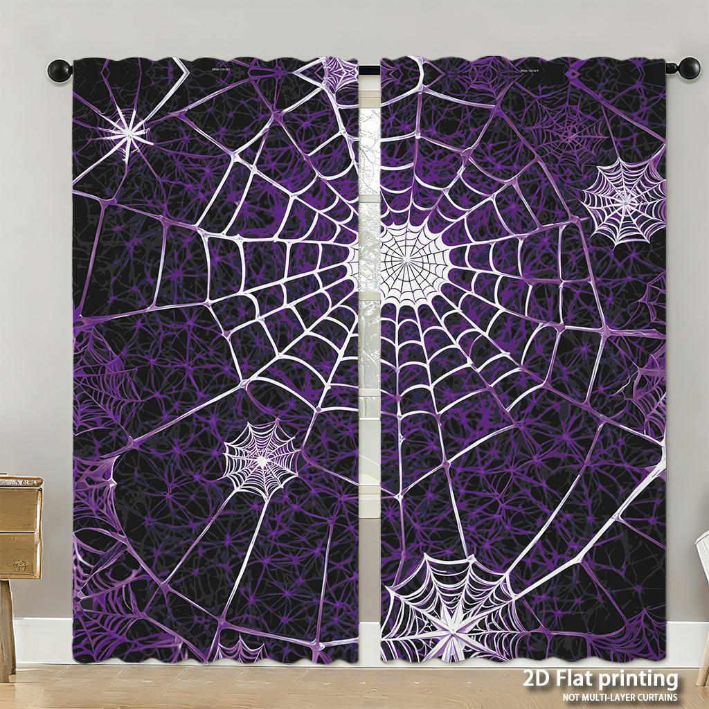 Piece Set High Definition Digital Printed Curtainspurple Spiderweb Style Curtainhome Decoration Curtains Made Of Polyester