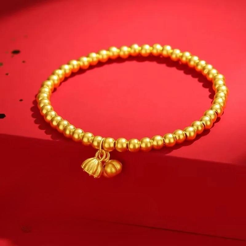 24K Gold AU999 Lotus Fortune Bead Bracelet Women's - Rich Hue, Clear Lines, Exquisite Bead Craftsmanship