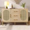 Buffet bas - Moderne - Bois de manguier - Métal - 3 portes - Naturel et doré