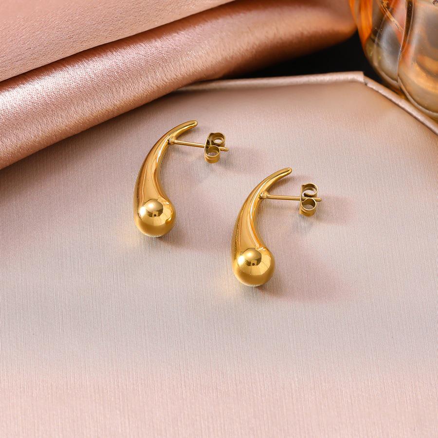 Golden Teardrop Titanium Steel Earrings: Elegant, Light Luxury for Women, Versatile Fashion Statement, Simple and Stylish Ear Cuff.