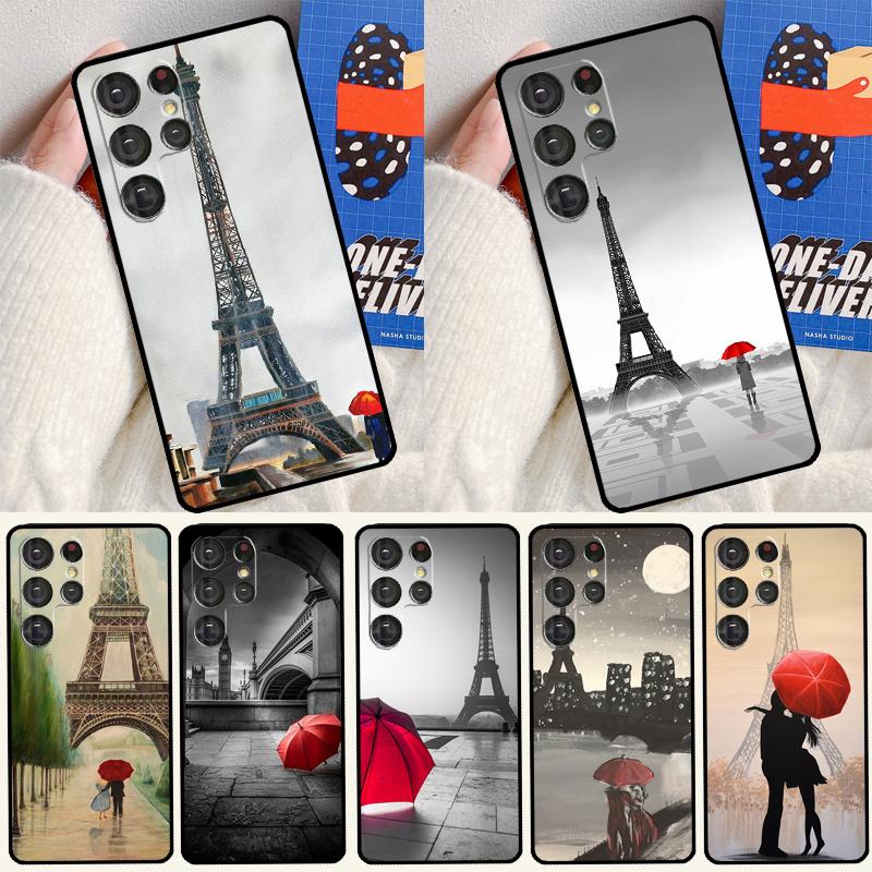 Red Umbrella Eiffel Tower Phone Case For Samsung Galaxy S25 Ultra S24 S23 Ultra S9 S10 S20 S21 S22 Plus S24 FE Cover