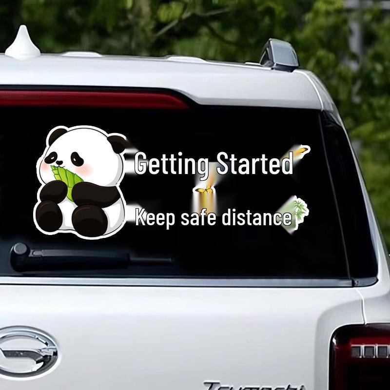Panda Cartoon Reflective Warning Sticker: 'New Driver, Keep Distance' – Waterproof Rear Windshield Decal