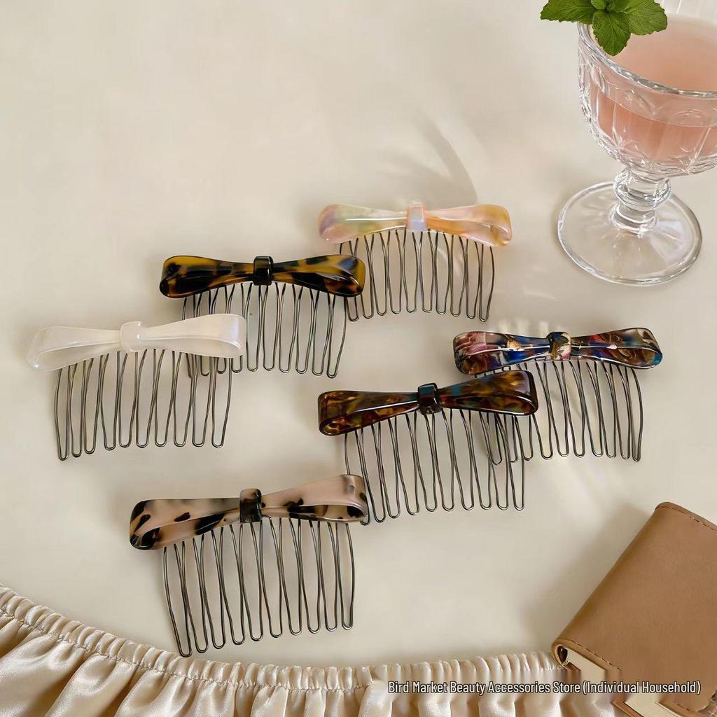 Korean-Japanese Style Acetate Bow Hair Comb for Women – Elegant Hair Bun & Bangs Accessory