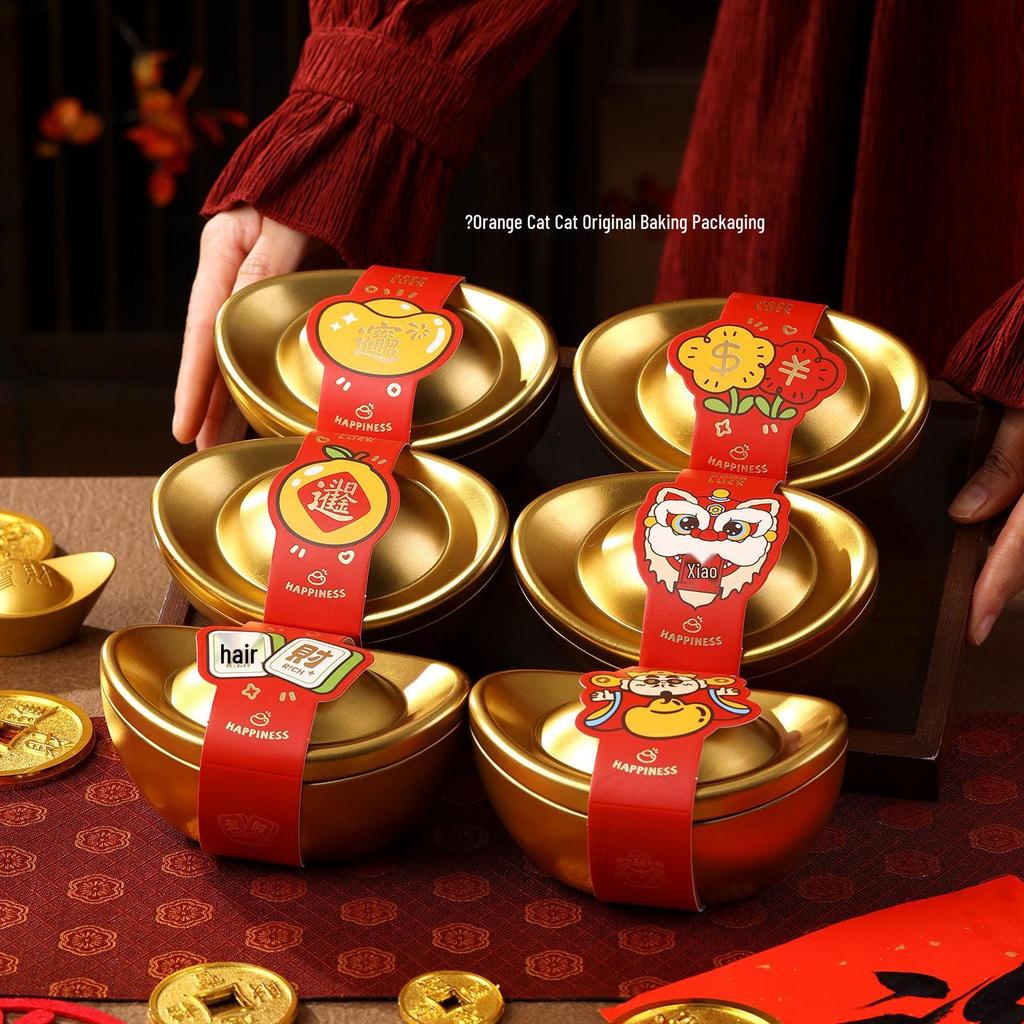 2026 New Year Gift Box: Premium Yuanbao Tin for Candy, Biscuit, Nut Storage