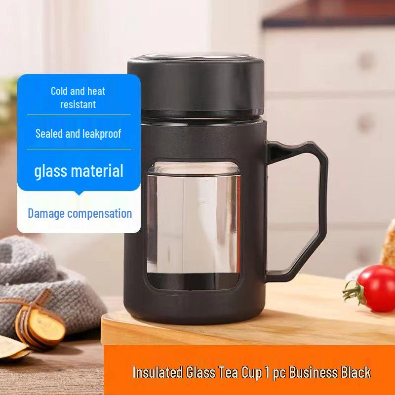 Large Capacity Insulated Explosion-proof Glass Tea Cup with Lid for Home and Office