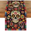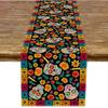 Linen Skull Table Runner Skeleton Tablecloth Banquet Tablecover Day of The Dead