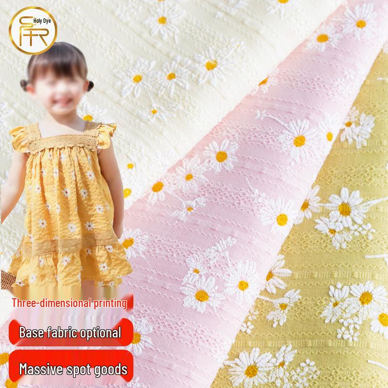 Pure Cotton 40s Three-Dimensional Daisy Print DIY Floral Fabric for Dresses, Children's Clothing, and Tablecloths.