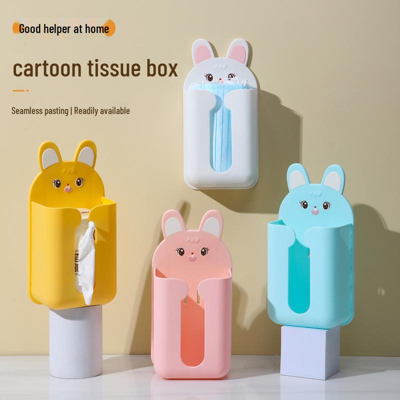Wall-Mounted Cartoon Tissue Dispenser: No-Punch Tissue Box & Storage for Facial Towels, Bathroom & Kitchen Hanging Solution