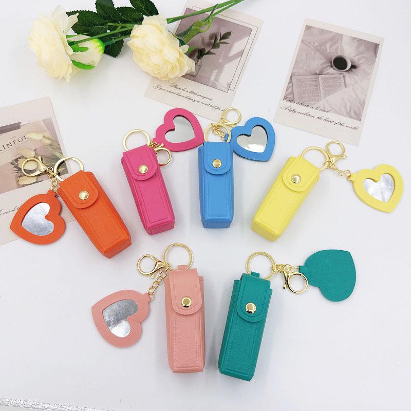 Macaron Color Mini Heart Mirror Lipstick Keychain Bag