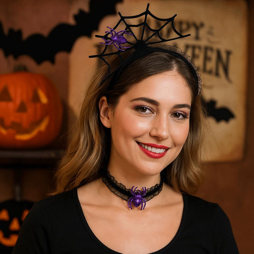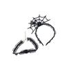 Mesh Halloween Headband Ruffles Spider Web Hairband Creative Hairband Necklace Set Boys/Girls