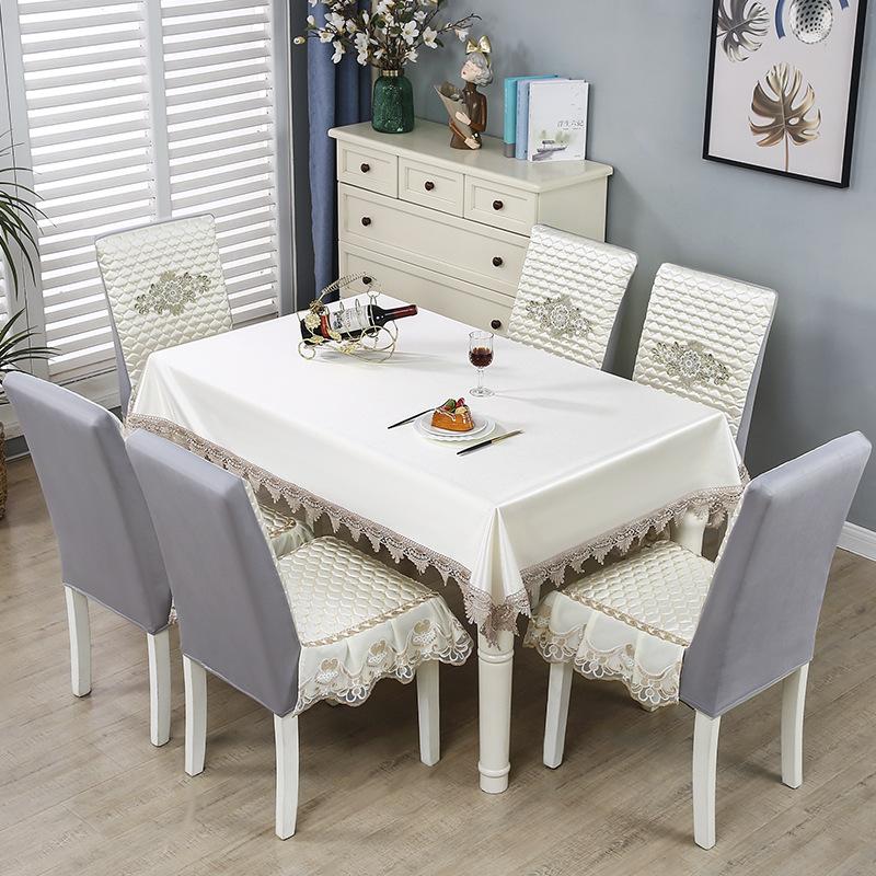 European Style Minimalist Embroidered Dining Table Fabric Mibai Lace Edge Tablecloth Elastic Chair Cover Non Slip Dining Chair Integrated Covers