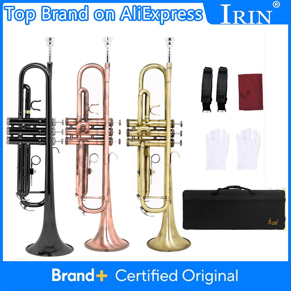 Bb Trumpet B Flat Brass body Trumpet Performance Beginners Pro Brass Musical Instrument with Straps Gloves Wipping Cloth Parts