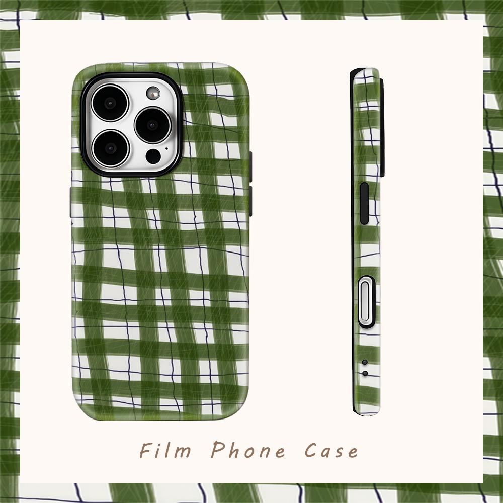 Rustic Green Plaid Phone Case for IPhone 17AIR 16E 16 15 14 13 12 11 17 Pro Max Plus Double-layer Back Cover