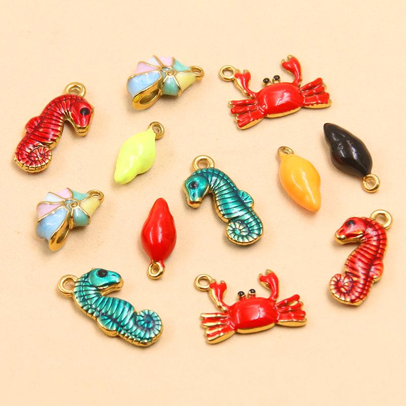 18K Gold Electroplated Seashell & Seahorse Charms: 4 Styles DIY Jewelry Accessories