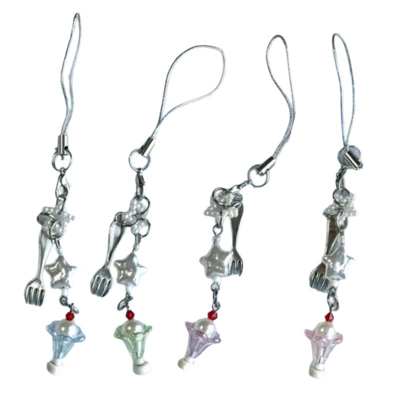 Sweet Dessert Theme Beaded Phone Strap Handmade Resin Charm for Women Girls Lovely Gift Keychain Bag Accessory