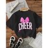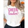 Women's Cheer Leader Graphic Print Casual T-Shirt - Pink Lettering & Star/Heart Design, Soft Stretch Round Neck Short Sleeve Top for Summer