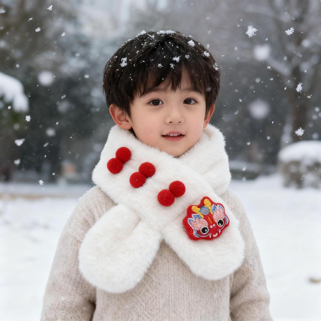 New Year Faux Rabbit Fur Children's Neck Gaiter - Thick, Warm, Cute, Unisex Scarf for Autumn and Winter