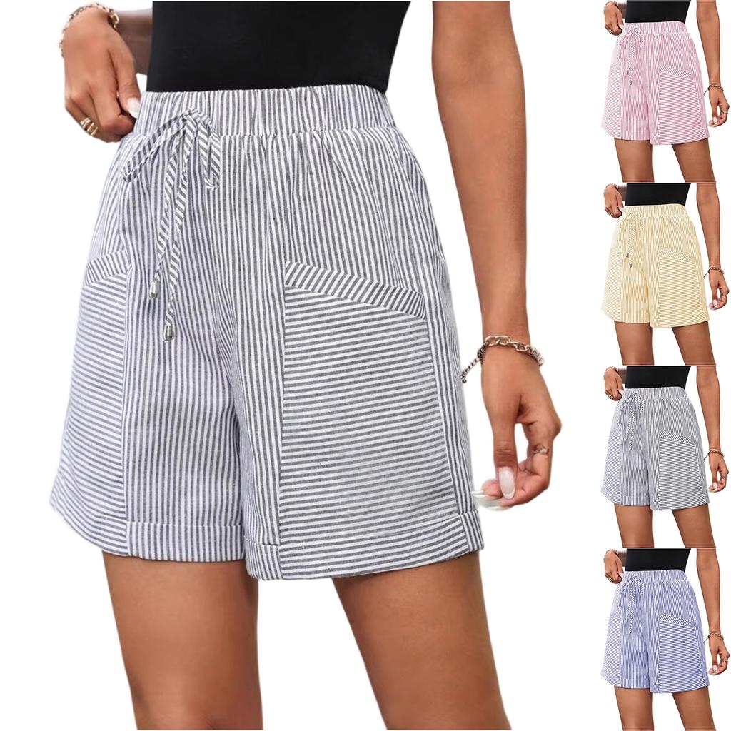 Women's Fashion Striped Casual Drawstring Elastic Pants Shorts