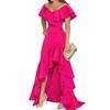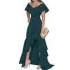 Volánkový lem a design mimo ramena činí tyto maxi šaty krásnější a módnější. Díky nepravidelnému vysokému nízkému volánovému lemu budete celý den vypadat elegantněji a přirozeněji.