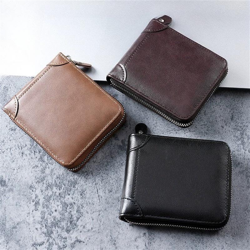 Men’s Pu Leather Trifold Wallet Zipper Wallet Multi Card Holder Coin Pocket Zip Around Wallet Secure Zipper Short Wallet Multi Card Slots Coin Pocket
