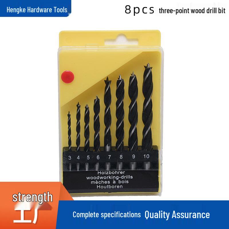 8-Piece High Carbon Steel Three-Point Woodworking Drill Bits Set (3-10mm) for Hand Drilling Wood Boards
