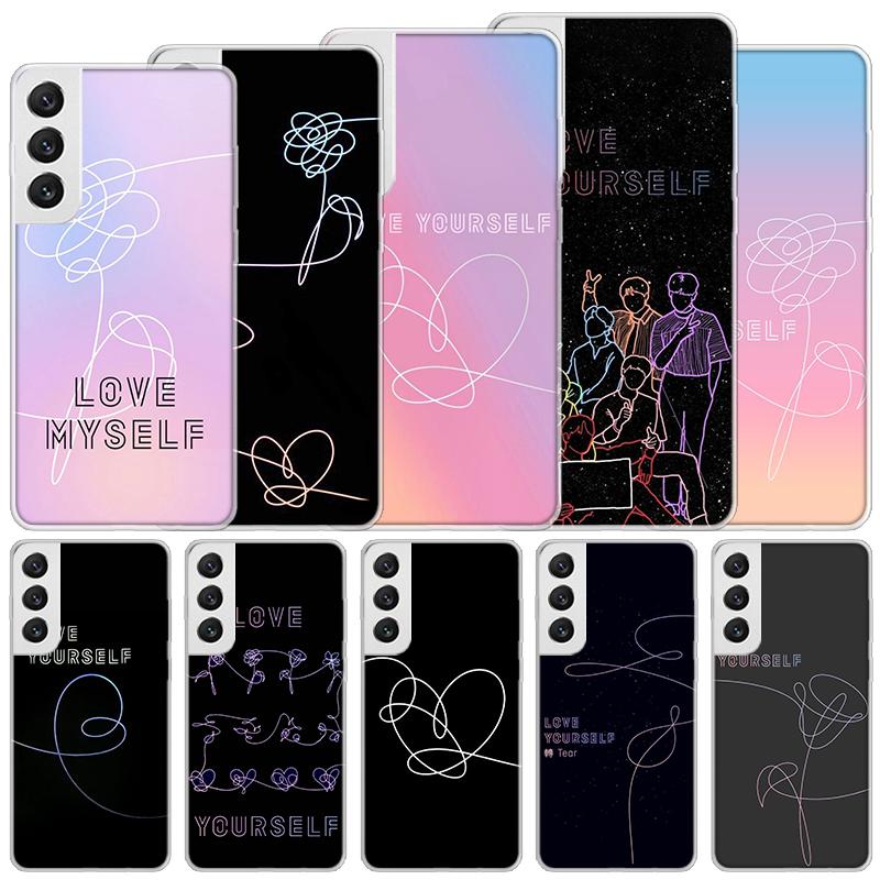 Love Yourself Flower Heart Line Kpop Soft Case For Samsung Galaxy S25 S24 S23 S22 Ultra Phone Cover S20 FE S21 Plus S25Ultra S24