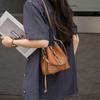 Fashionable Ins Drawstring Bucket Bag TOGO Top-layer Cowhide Contrasting Cross-shoulder Shoulder Genuine Leather Women's Single