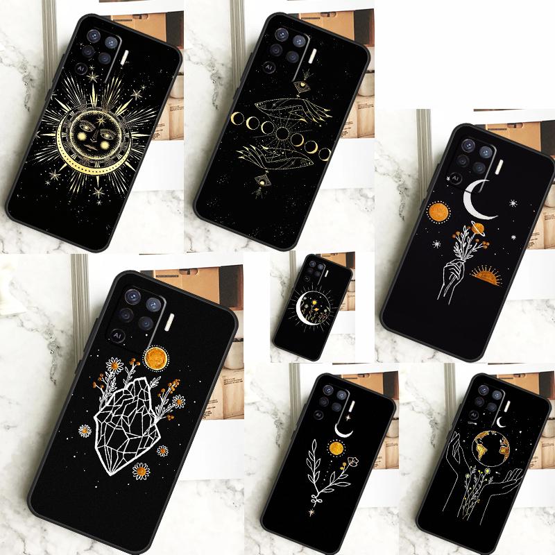 Sun Moon Flowers For OPPO A17 A16 A15 A79 A58 A78 A98 A74 A94 A77 A5 A9 A96 A76 A52 A72 A53S A54S A57S Case