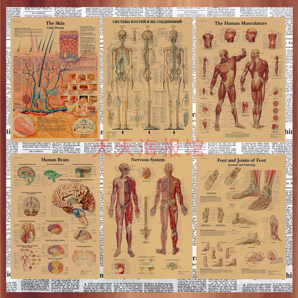 Anatomie kosterního svalstva Diagram Retro plakát pro výzdobu třídy Nástěnné umění (584)