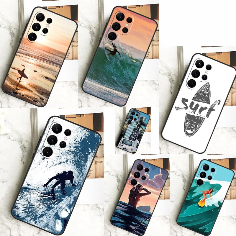 Surfing Wave Case For Samsung Galaxy S24 Ultra S23 S22 S21 S20 FE Note 20 S8 S9 S10 Note 10 Plus Cover
