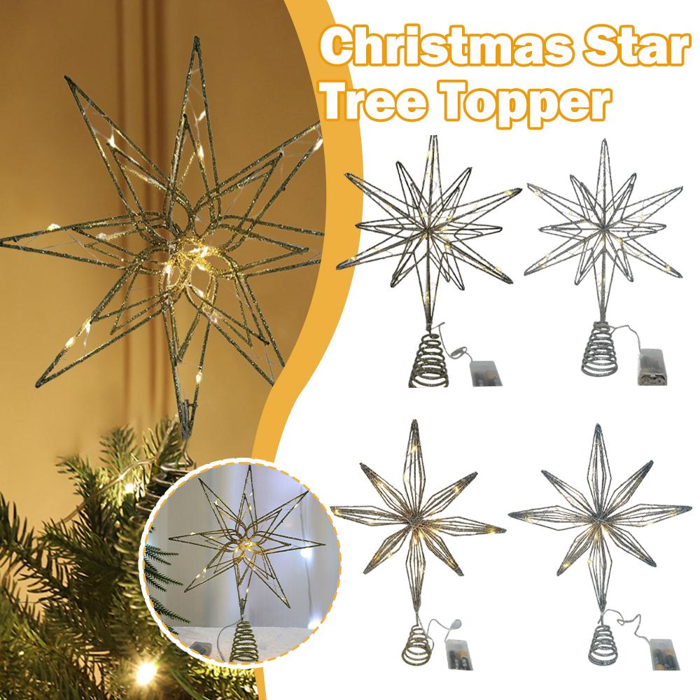 20-Lights Christmas Star Tree Topper Multi-Pointed Pre-lit Glittered Snowflake Treetop Lighted Xmas Treetop for Home Decorations