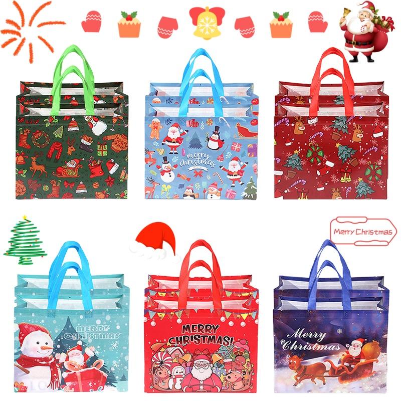 6/12Pcs Multifunctional Non-Woven Christmas Bags for Gifts Wrapping Shopping - Treat Bags with Handles, Xmas Party Supplies