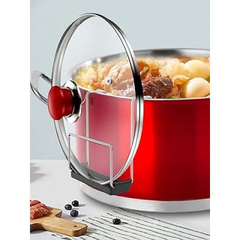 1pc Stainless Steel Slow Cooker Lid Holder, Pot Lid Organizer with Non-Slip Base, Space-Saving Countertop or Sink Storage Rack