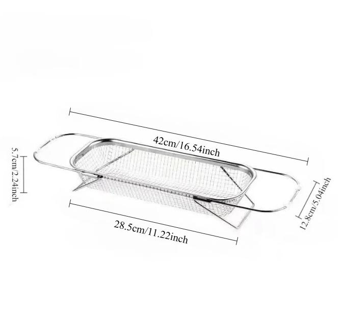 1 Sada Nerezový Odkapávač přes Dřez s Teleskopickou Rukojetí - Kovový Síťový Cedník pro Mytí Ovoce a Zeleniny