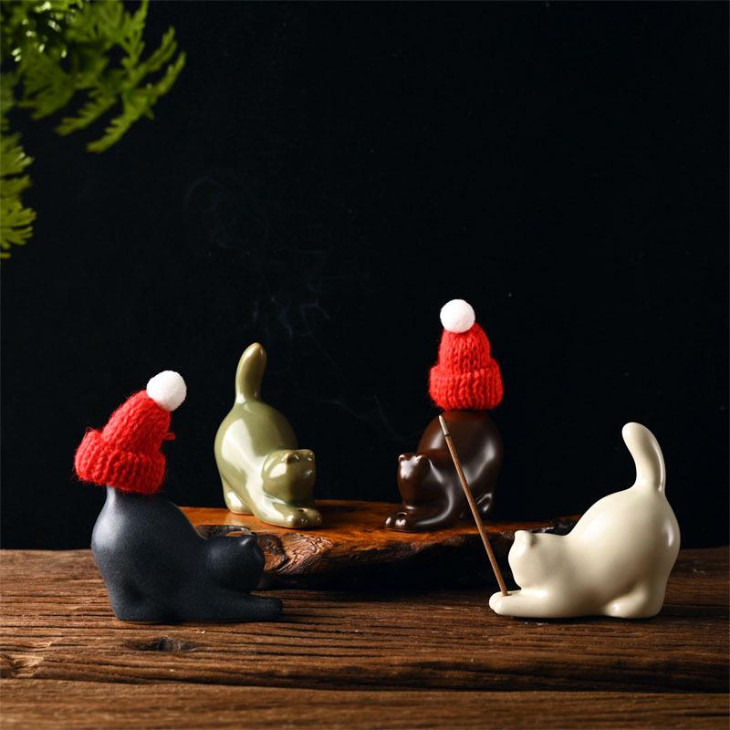 Zen-Style Cat Incense Holder: Ceramic Ornament for Home, Tea Table, Agarwood & Sandalwood Incense