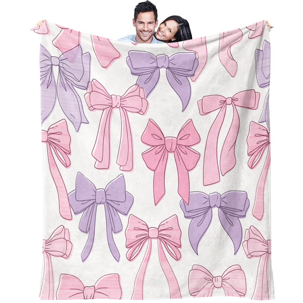 Pastel Bow Pattern Air Conditioning Blanket Cute Pink Purple Design Nap Blanket for Sofa Bed Soft Bedroom Decor Gift Blanket