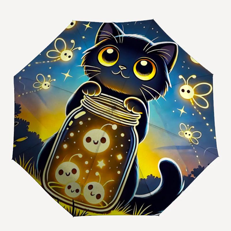 1pc Night Cat Compact Travel Leisure Umbrella, Auto Folding Lightweight Windproof 8-Bone Reinforced Design, Portable for Backpack Durable Ca