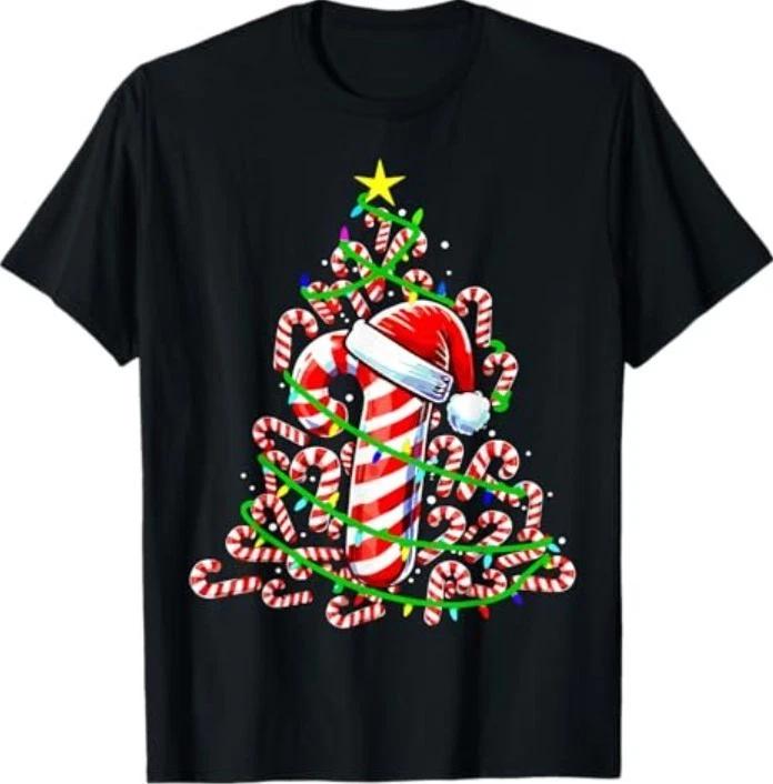 Candy Cane Christmas Tree Lights Santa T-Shirt