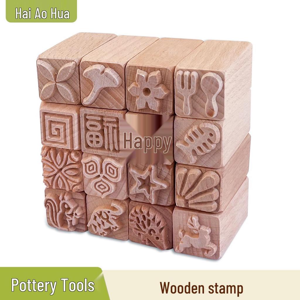 16-Piece Handcrafted Solid Wood Stamps for Clay Sculpting and Cartoon Mooncake Textures
