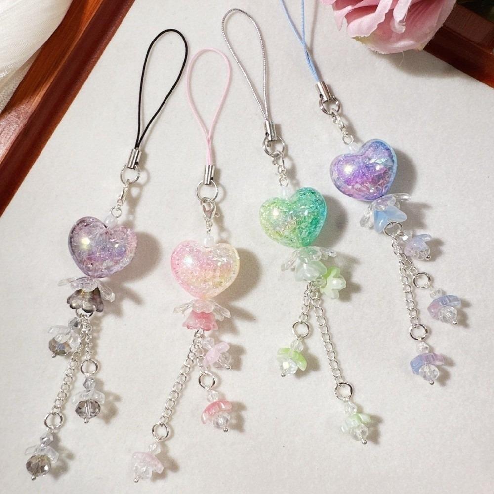 Floral Design Flower Bag Pendant Chubby Shape Mobile Phone Pendant Heart-Shaped Keychain Student
