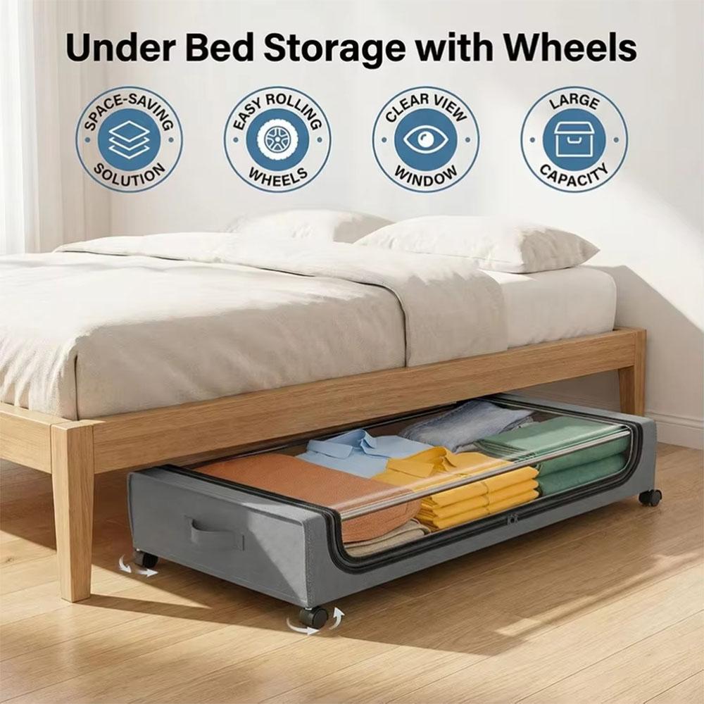 Large Capacity Transparent Lid Under Bed Storage Box with Wheels & Lids Fits Shoes Clothes Ideal for Dorm Bedrooms Storage Box