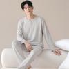 Nové pánské pyžamo Jaro Podzim Dlouhý rukáv Spací úbor Zima Bavlna Pulovr Jednobarevný Kulatý výstřih Ležérní Domácí oblek
