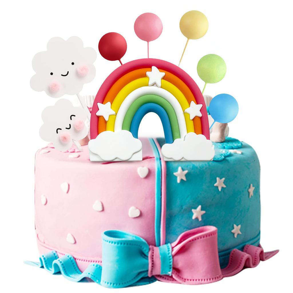 8PCS Rainbow Cake Decoration Set, Pastel Heart Rainbow Clouds Balloon Topper for Boys Girls Birthday Wedding Todder Baby Shower